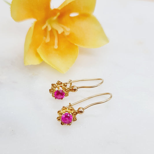 Ohrringe Synth. Rubin 585 14 KT Gold