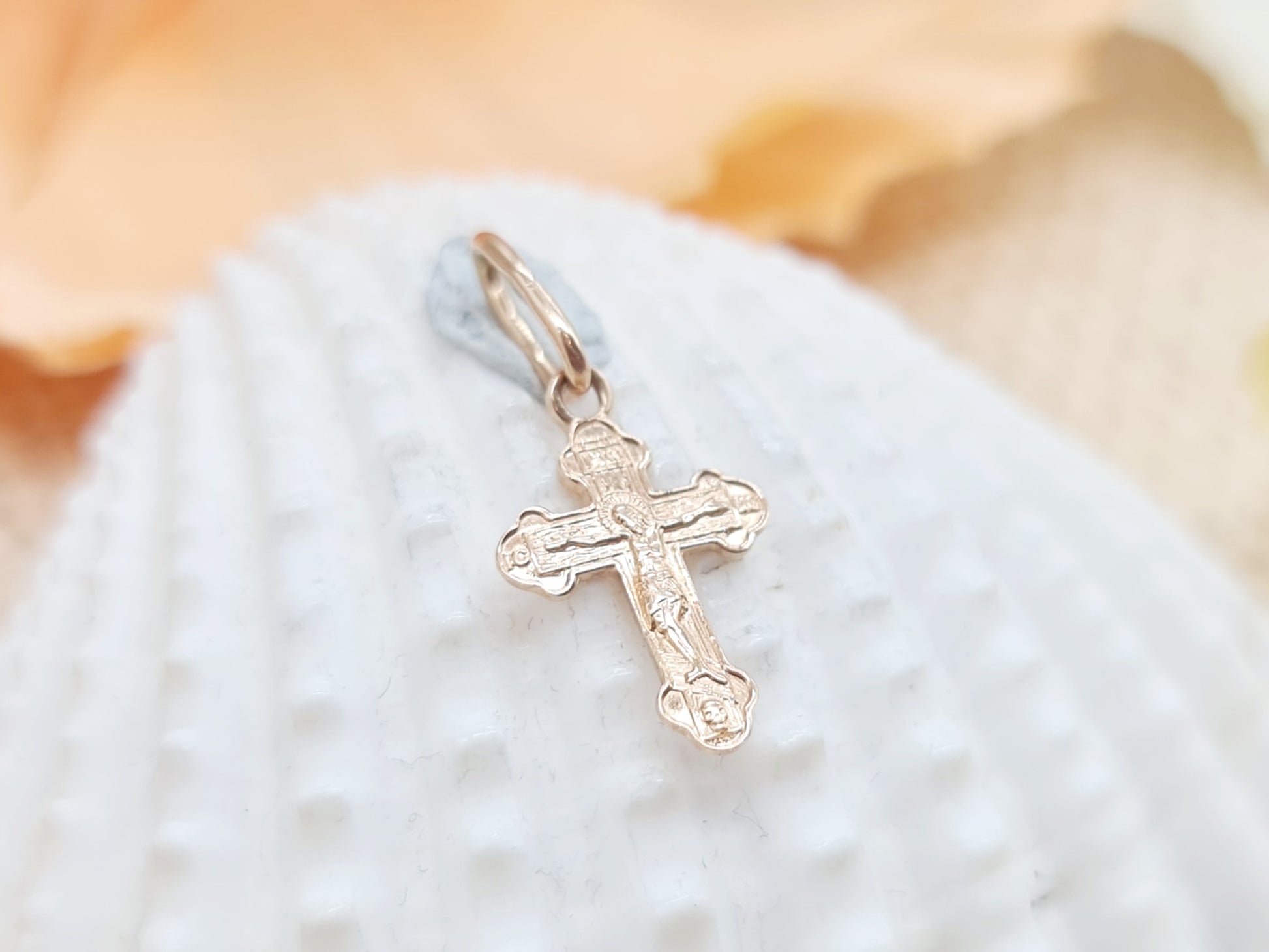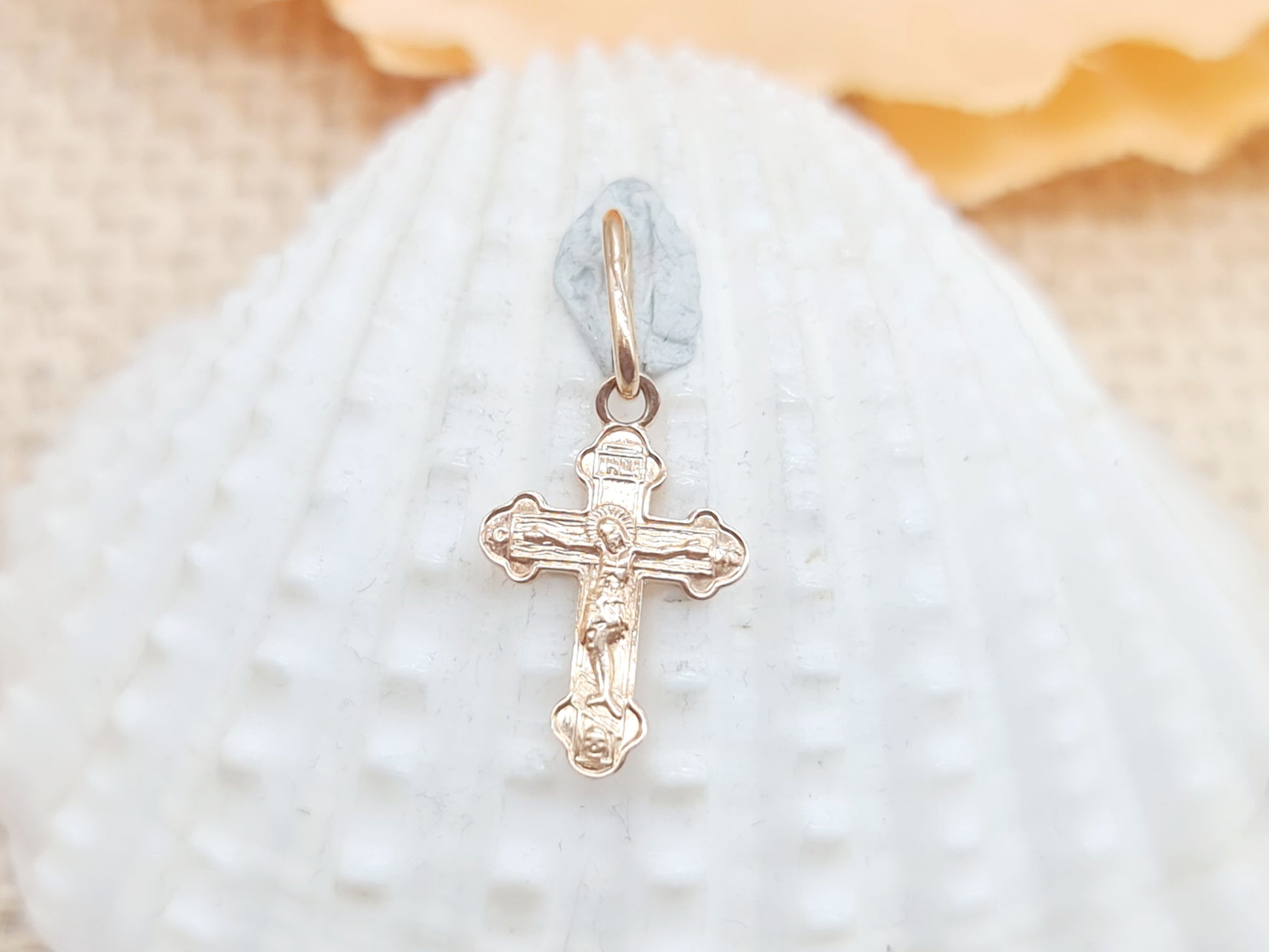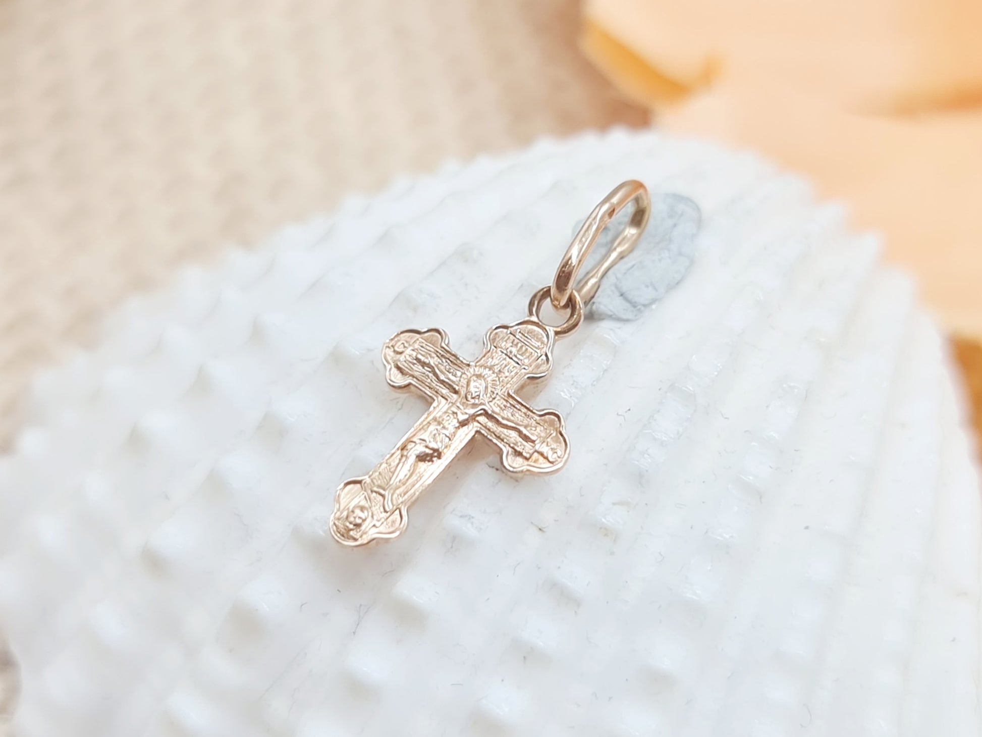 Anhänger russisches Kreuz 585 14 KT Rotgold