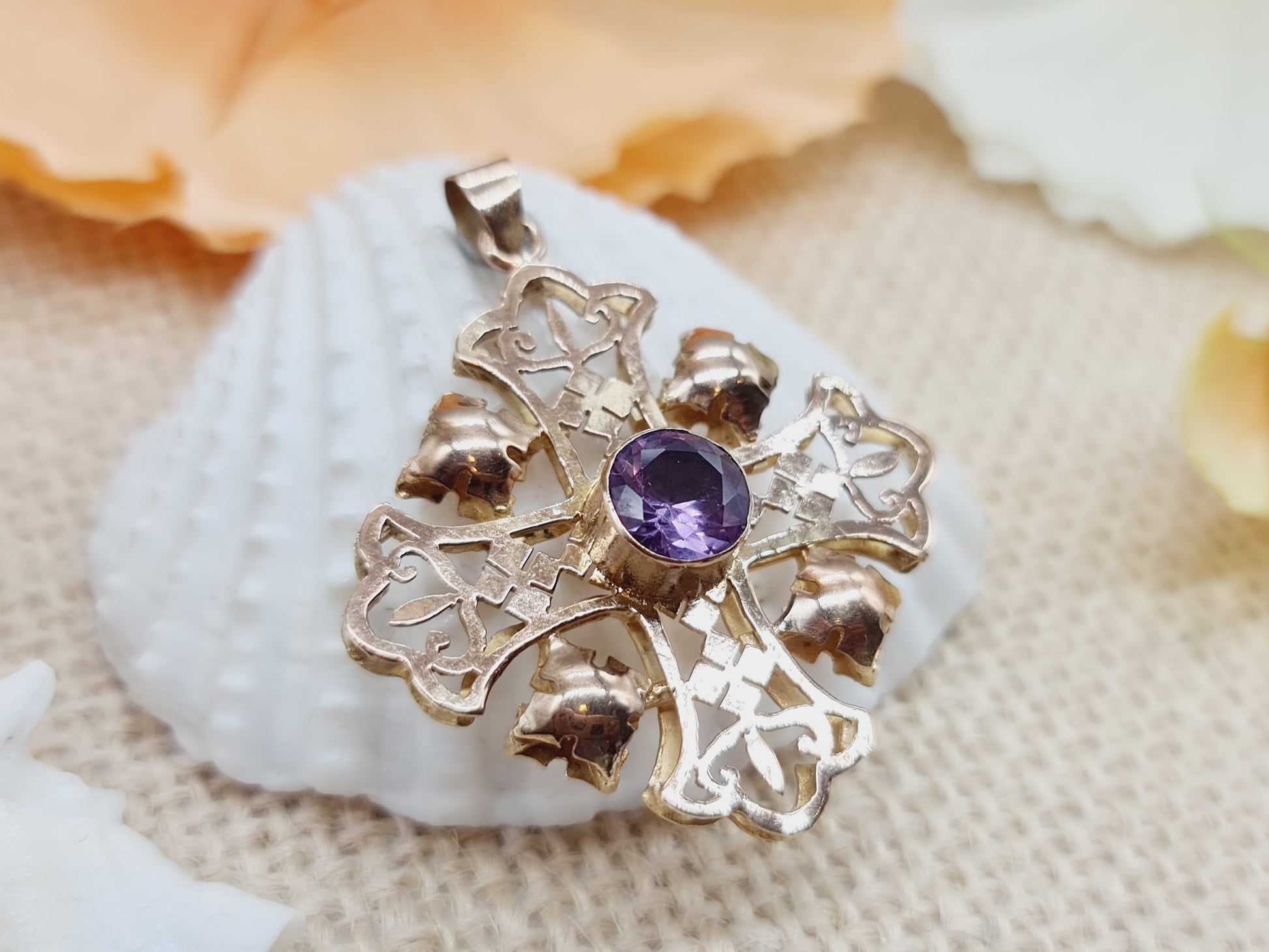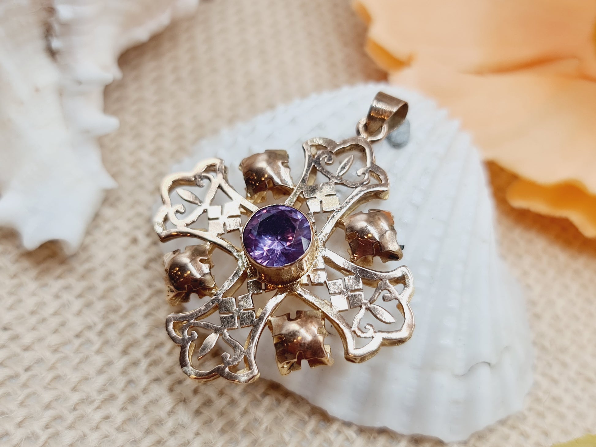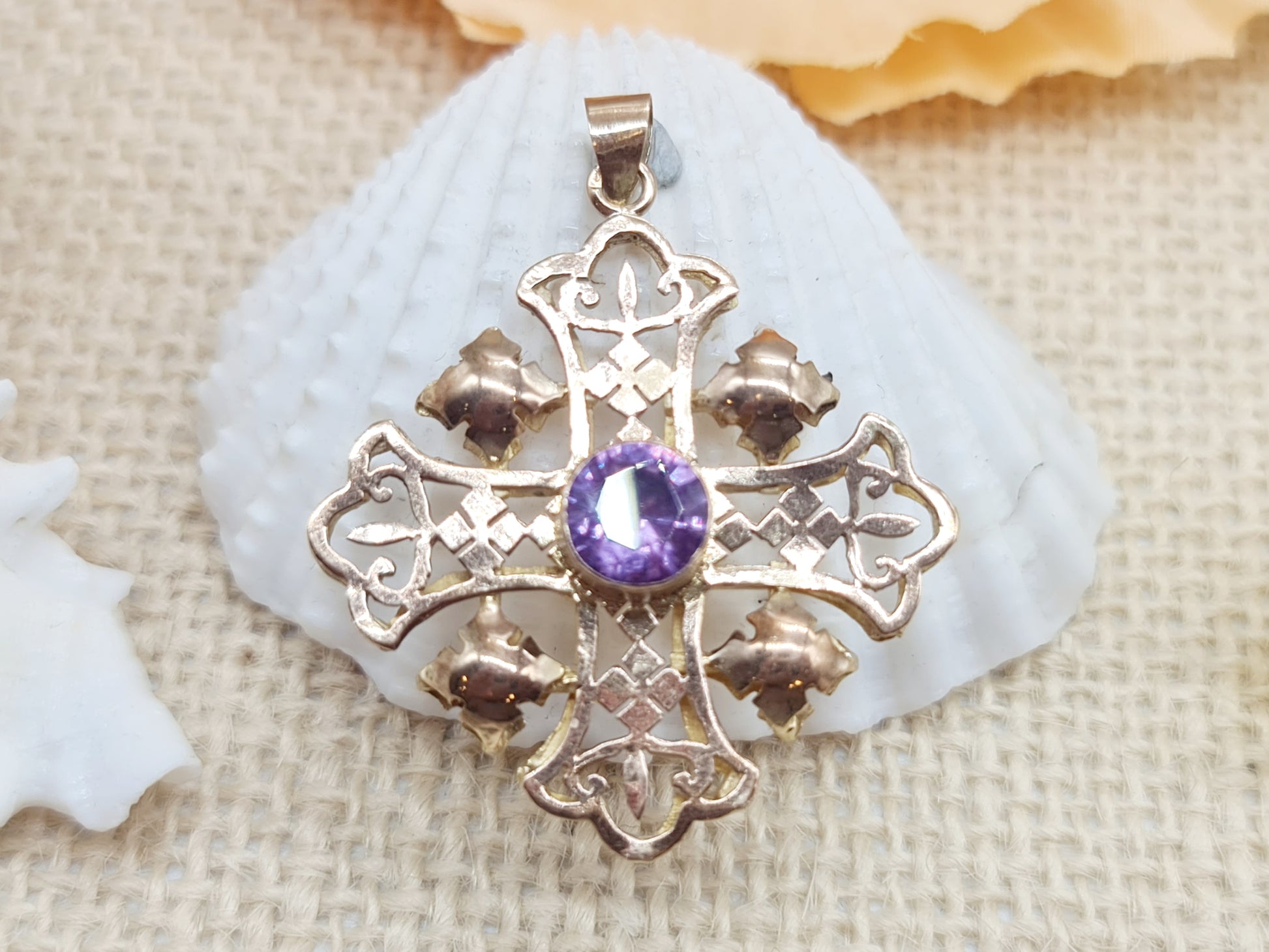 Antikes Jerusalem Kreuz Amethyst 333 8 KT Gold