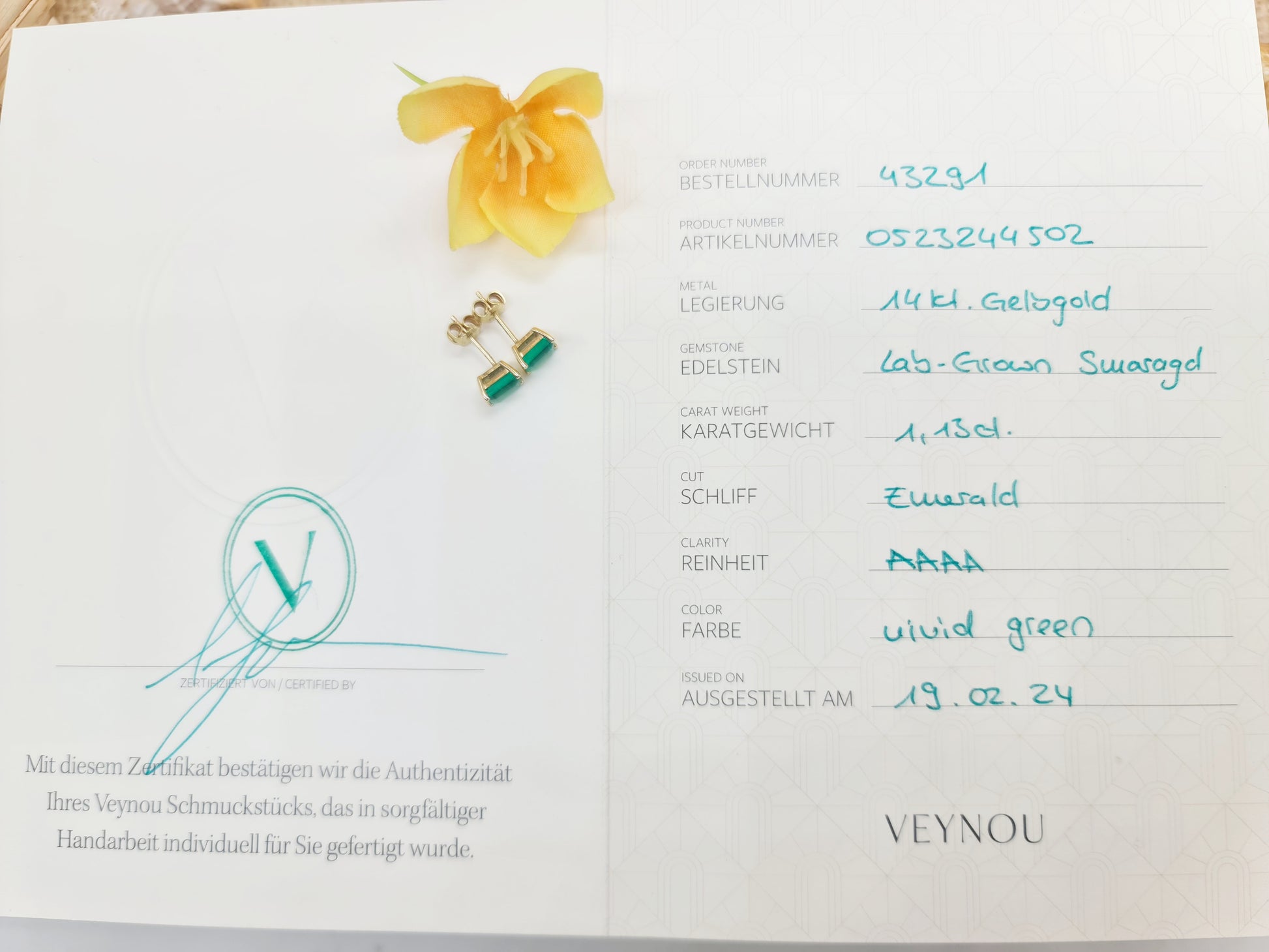 Ohrringe Lab Grown Smaragd 585 14 KT Gold
