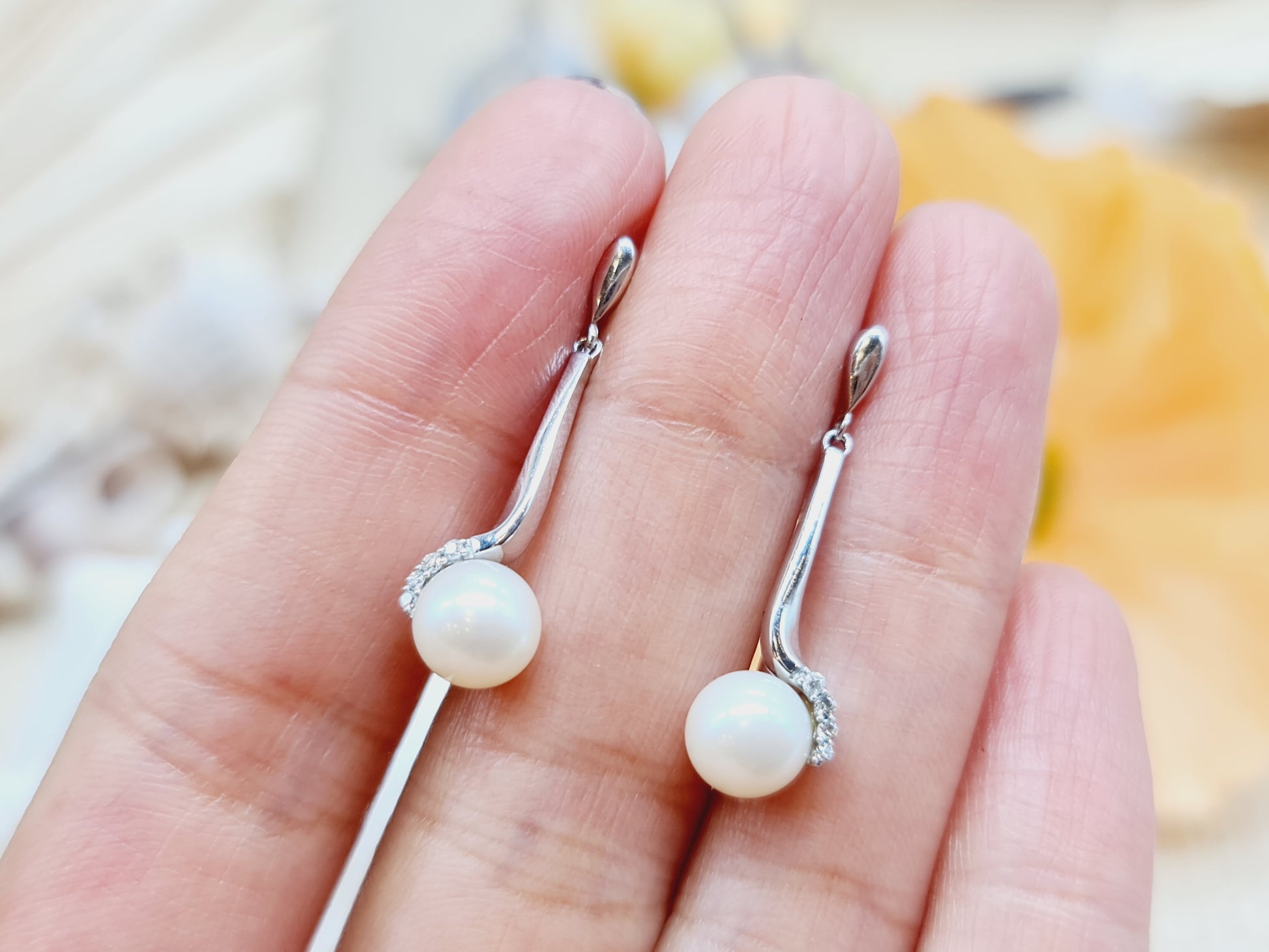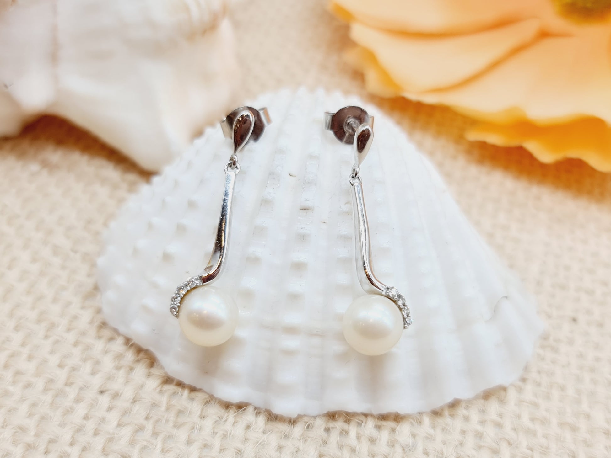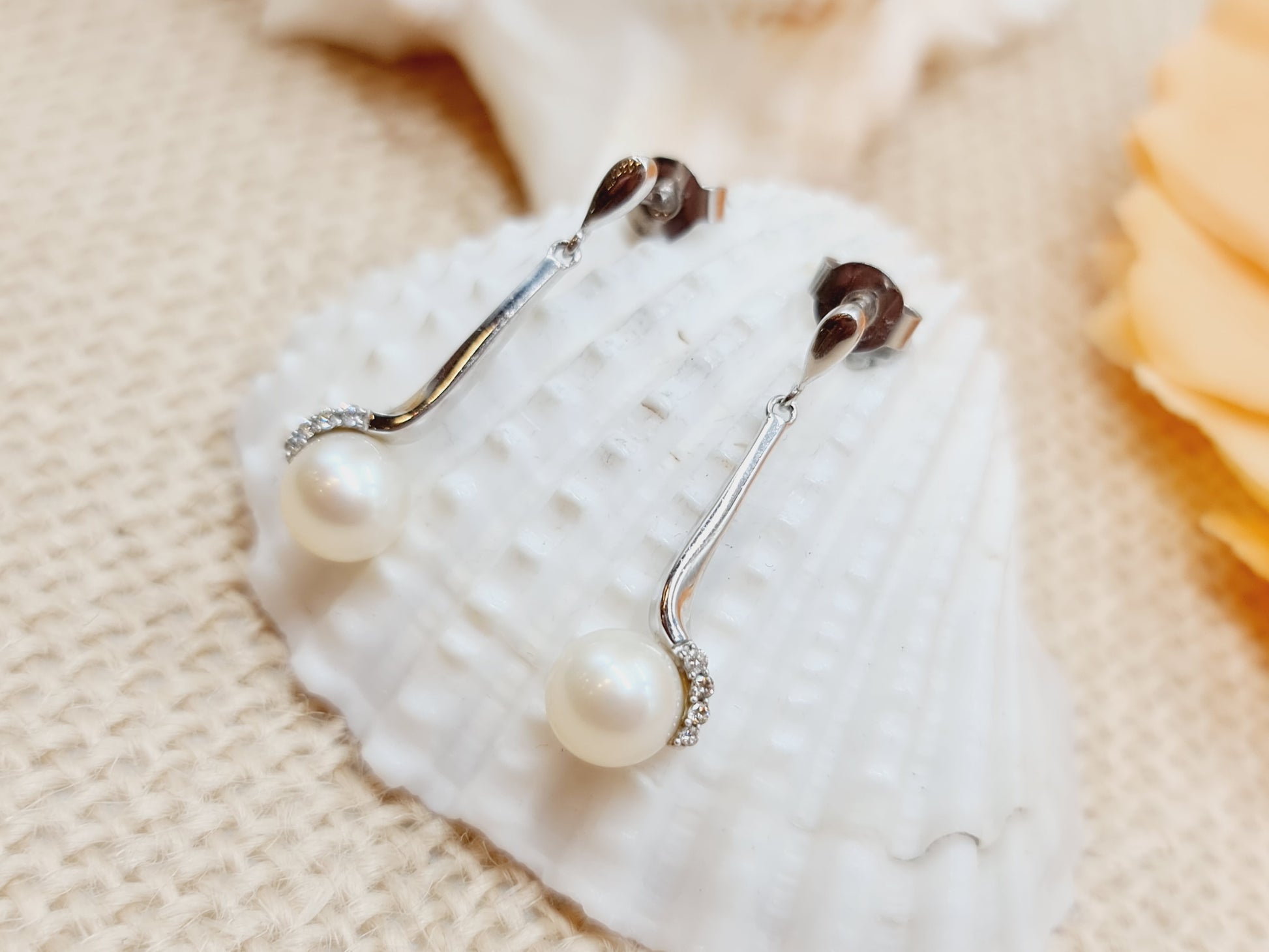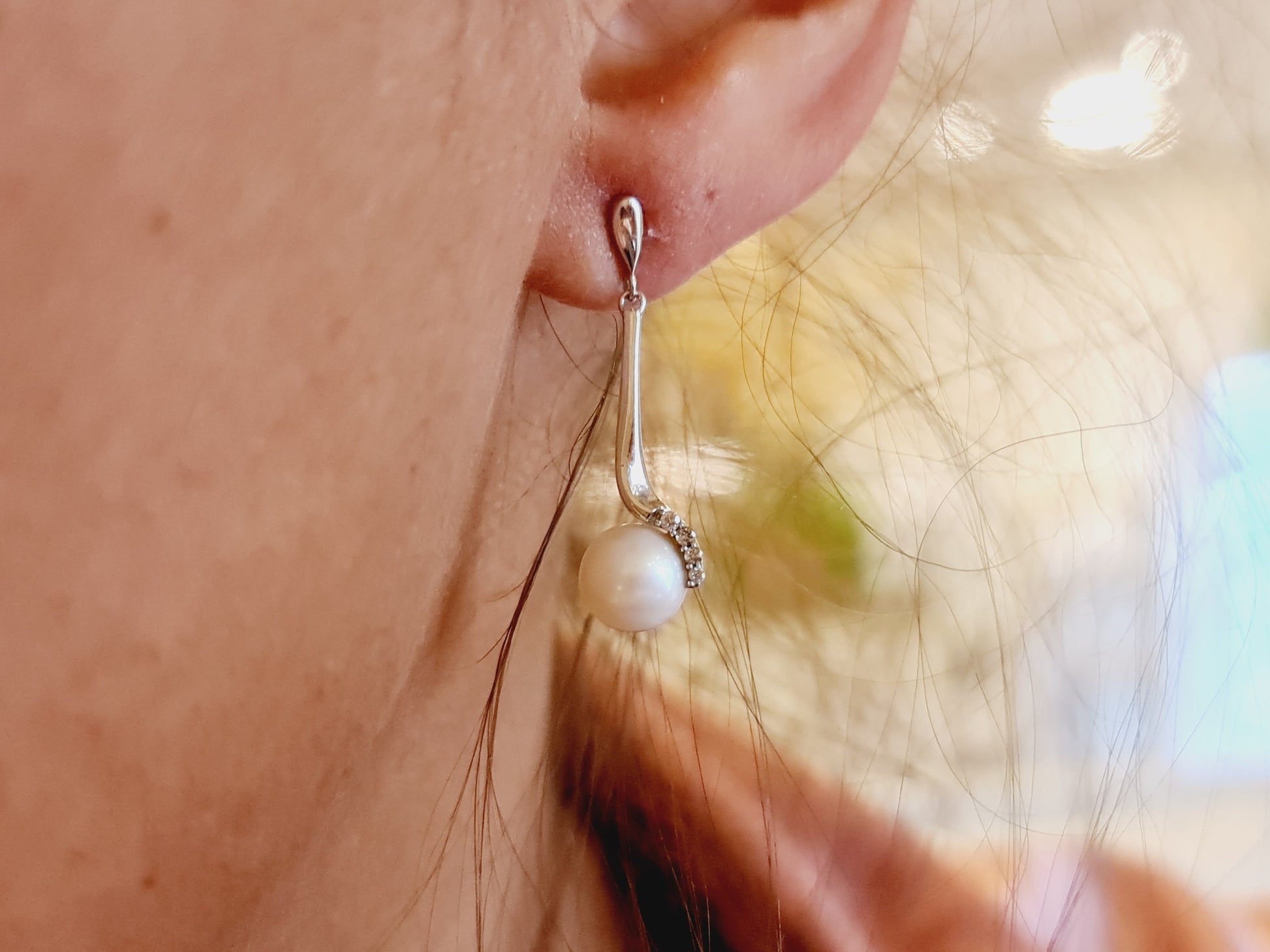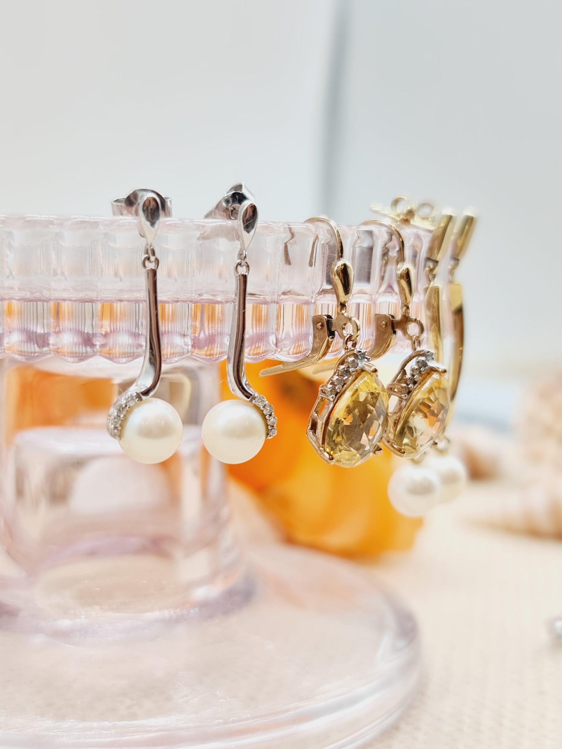 Diese eleganten geschwungenen Ohrhänger sind aus 585 Weißgold gefertigt und mit Perlen und Brillanten verziert. Die geschwungene Form verleiht den Ohrringen eine moderne und feminine Note, während die Perlen und Brillanten für einen luxuriösen und glamourösen Look sorgen. Diese Ohrhänger sind perfekt für besondere Anlässe oder um Ihrem täglichen Outfit eine elegante Note zu verleihen. Mit ihrer edlen Optik und hochwertigen Verarbeitung sind sie ein echter Blickfang und eine wertvolle Ergänzung für jede Schmucksammlung.
