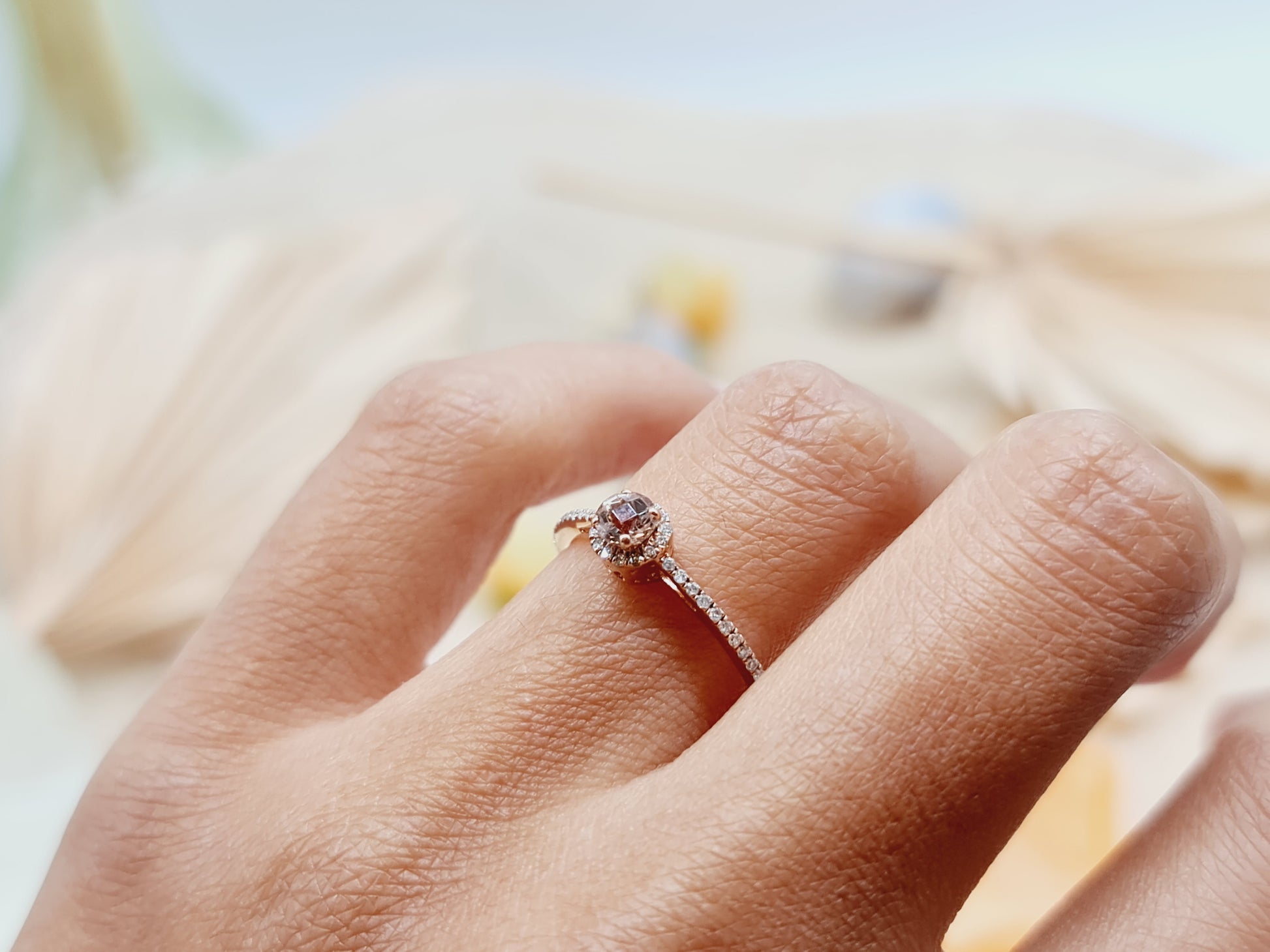 Ring Solitär Morganit Brillanten 417 10 KT Rotgold