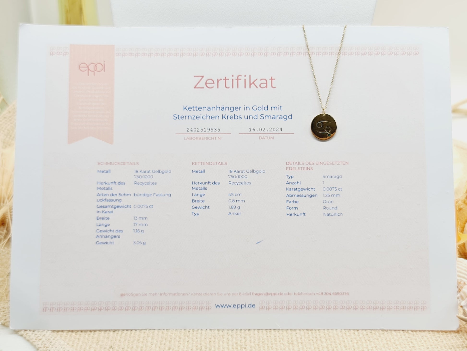 Muster/Besatz: Sternzeichen Krebs, Smaragd