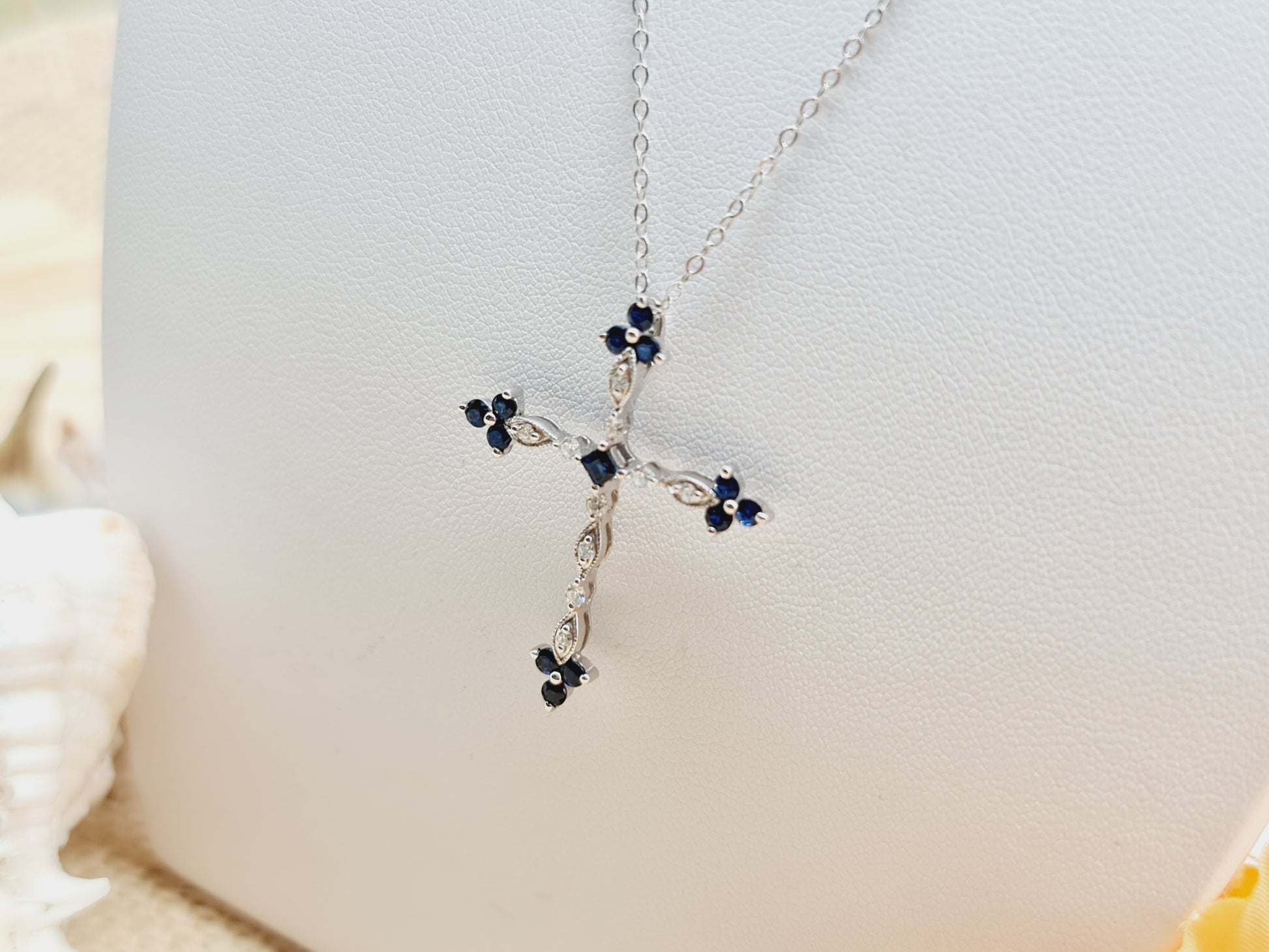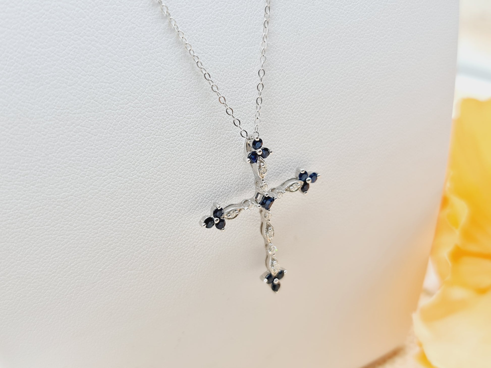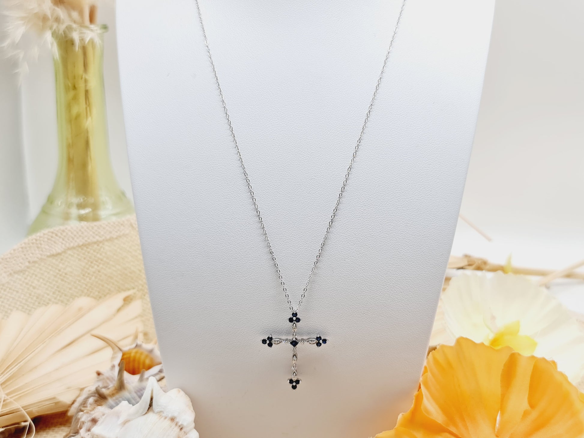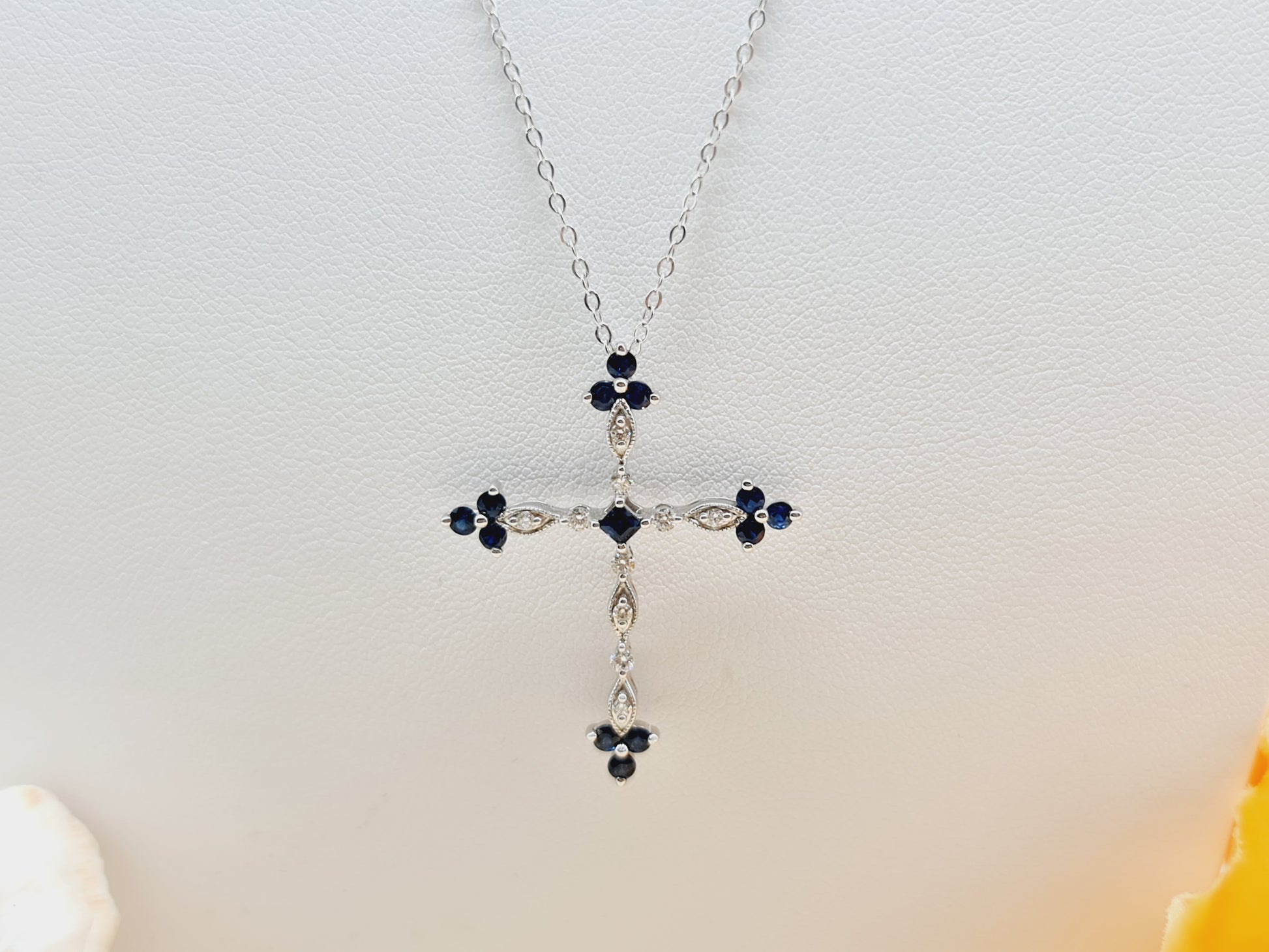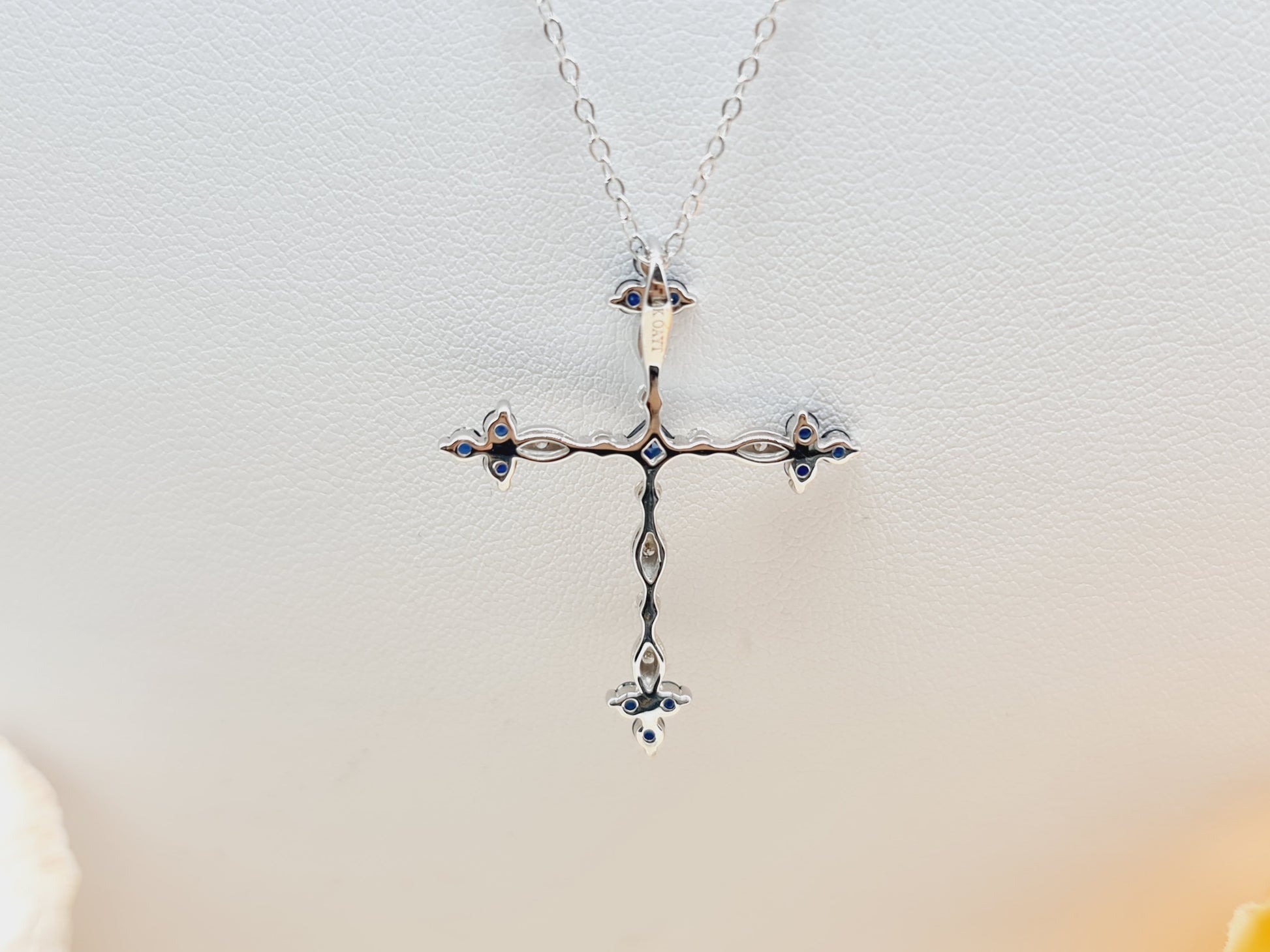Collier Kreuz Safir Brillanten 45,5cm 585 14 KT Weißgold